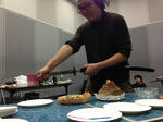 たまたま代表が大きな包丁をもっていたので、ケーキを切り分けてくれましたよ!