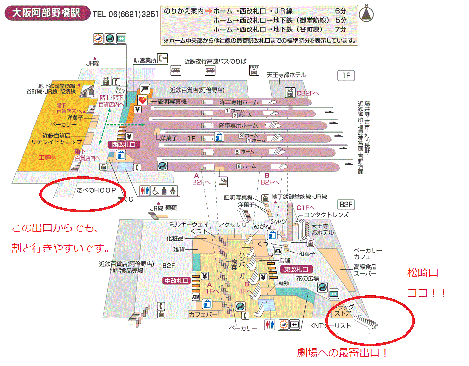 松崎口とHOOPの前に出れる出口をチェックしてあります。