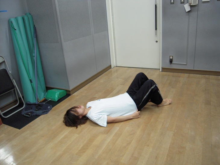 写真は背筋してますが、あと腹筋と左右の側筋ヴァージョンもやりました。